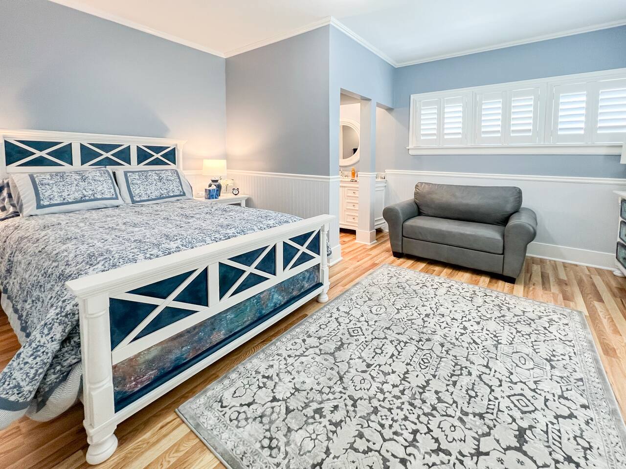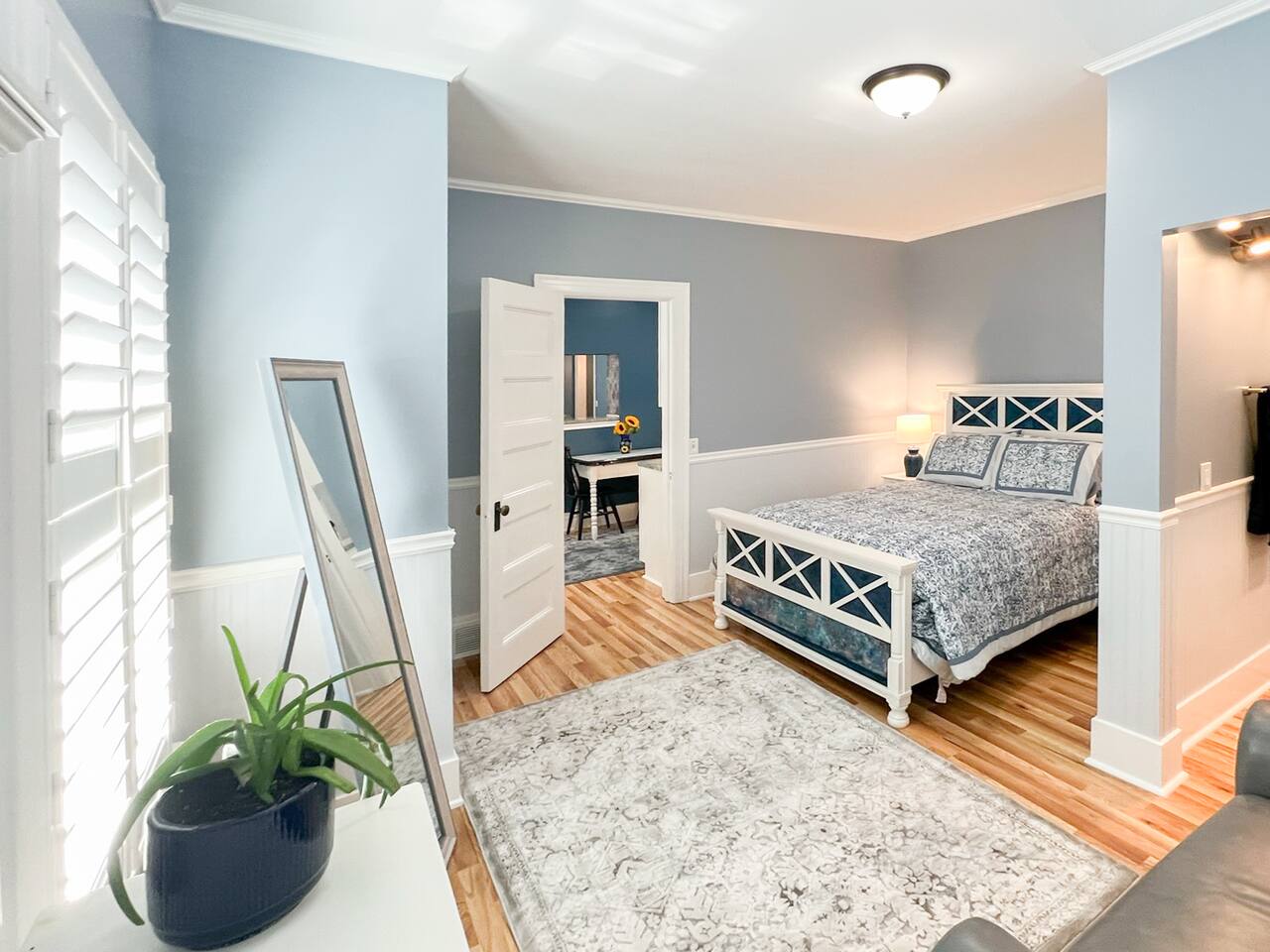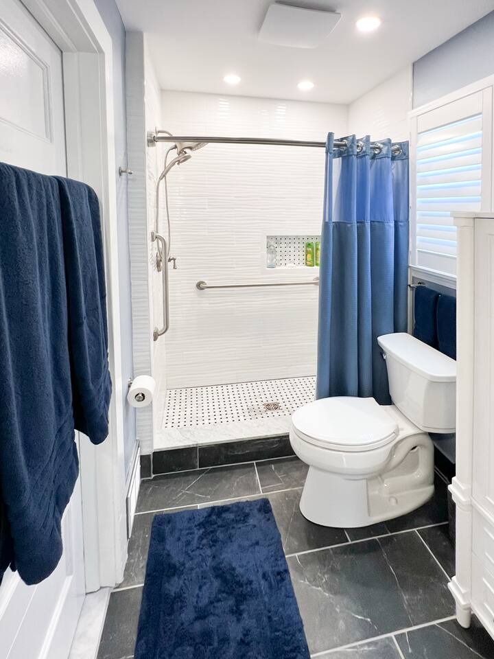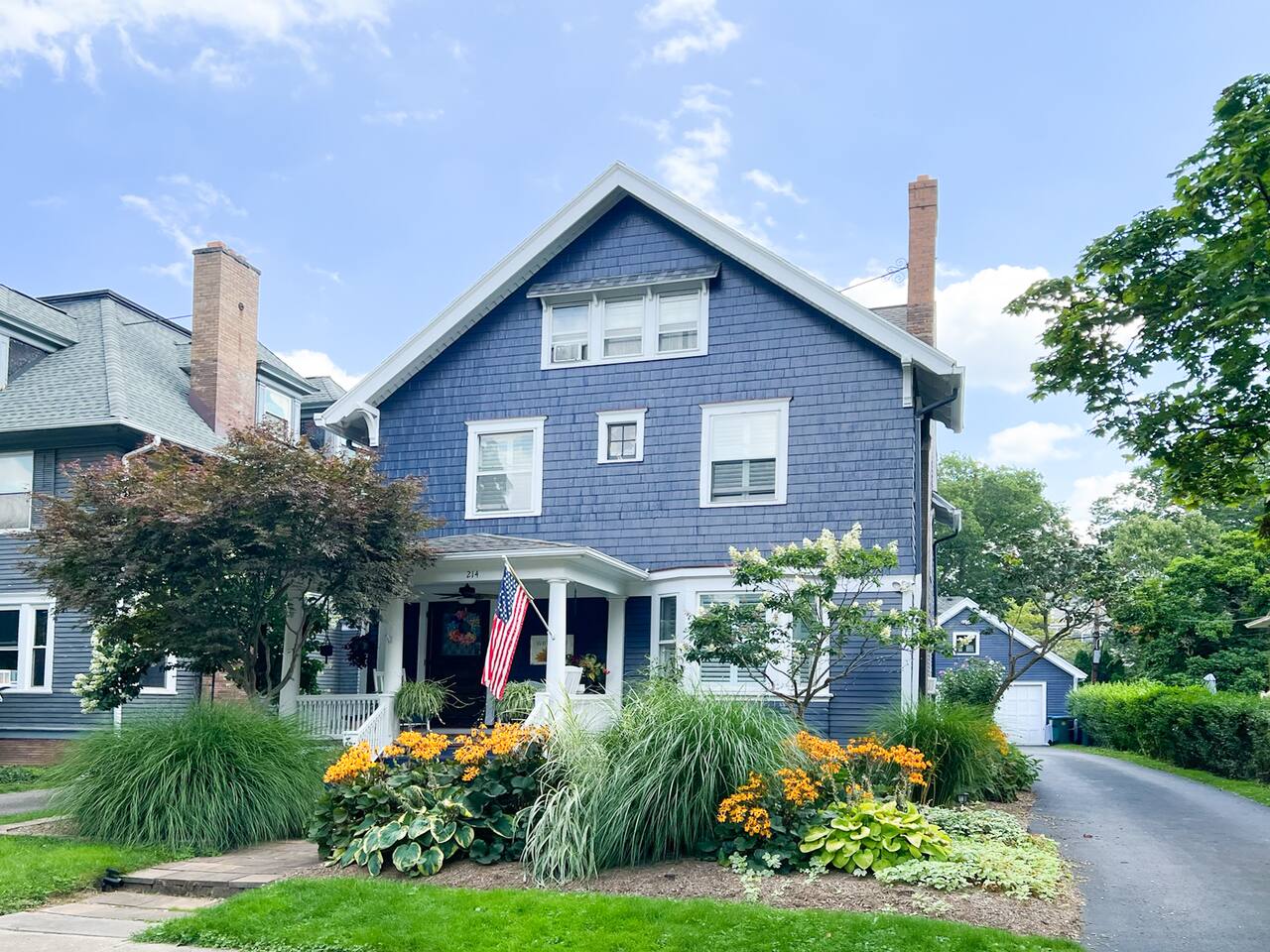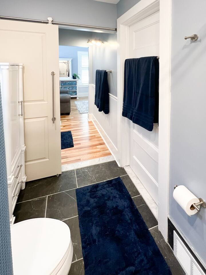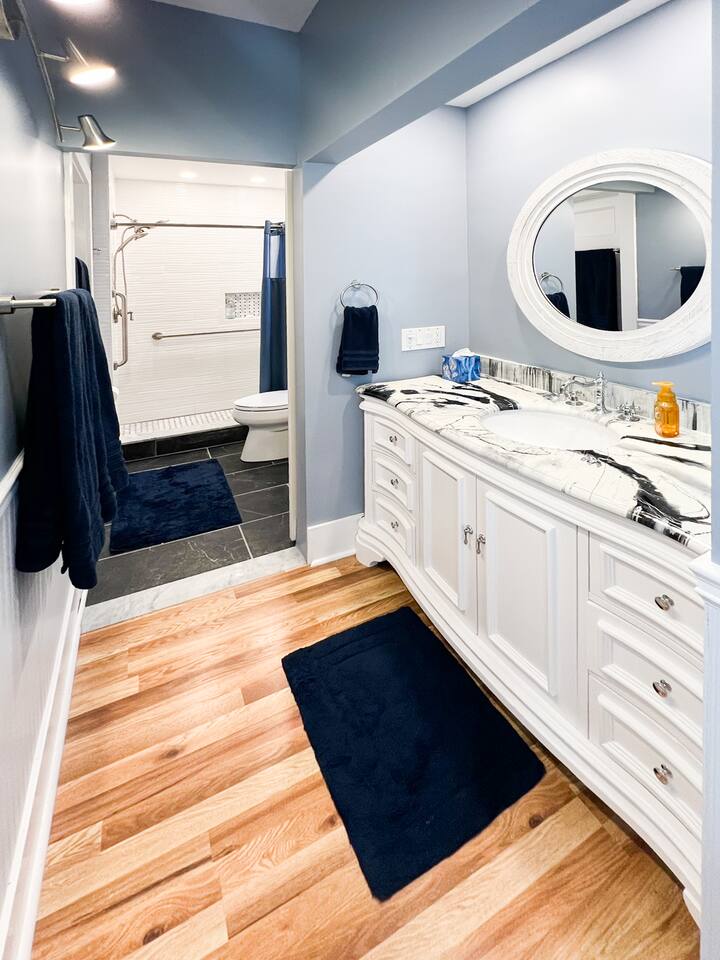 When you walk into our place, you will be in the large family room. There is a large couch & chair with a TV. The kitchen is fully stocked with a large refrigerator, gas stove, and dishwasher. It's a great space to cook meals and unwind after a long day around Rochester. The bedroom has a very comfortable bed with a gorgeous en suite bathroom. There is a front porch with plants and some chairs to sit during those beautiful summer nights. Our home is peaceful and a wonderful getaway for anyone to visit Rochester. It's great for Eastman School of Music students coming to audition, as well as parents visiting their kids at college. The University of Rochester, Nazareth, & St. John Fisher University are all very close by and our home makes for an easy drive.